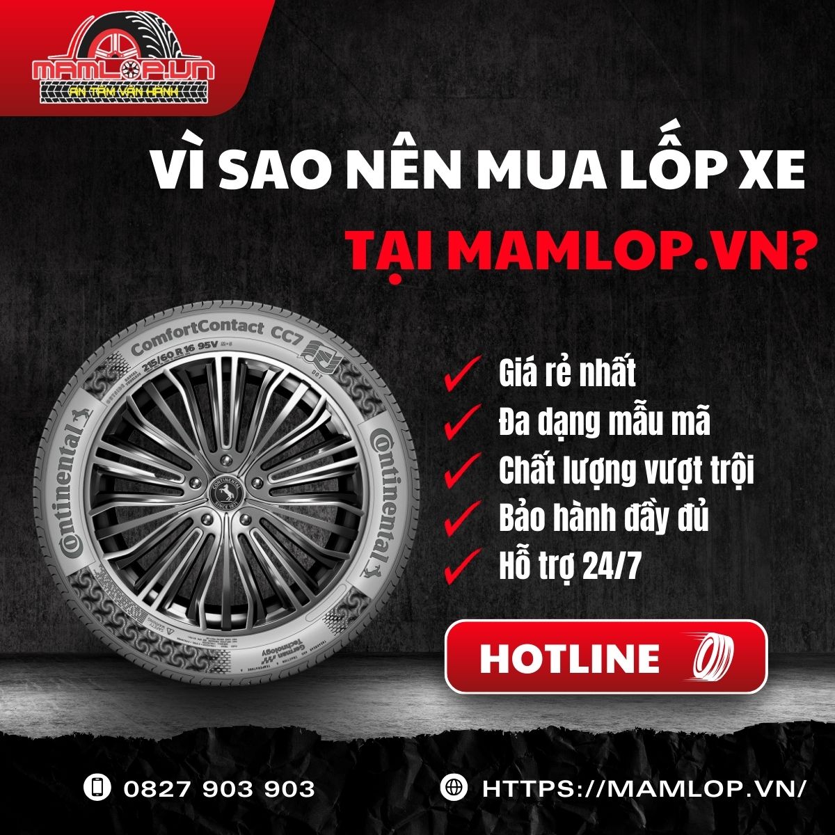 Trên đây là thông tin về lốp Continental 165/65R14 ComfortContact CC7 chính hãng, bảo hành chuẩn hãng với mức giá tốt. Đây là lựa chọn cao cấp đáng tin cậy cho Hyundai i10, Hyundai Getz. Để được tư vấn và đặt hàng, hãy liên hệ Mamlop.vn qua hotline: 0827 903 903.