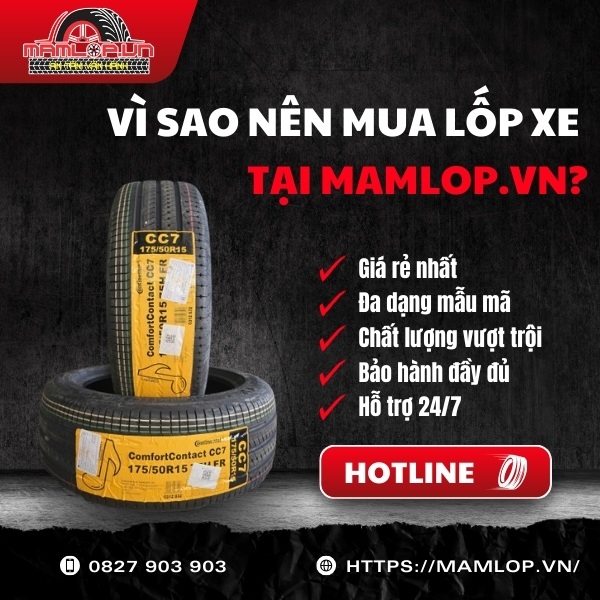 Lốp Continental 175/50R15 ComfortContact CC7 đánh dấu bước tiến mới với kích thước mâm 15 inch – mang đến vẻ ngoài thể thao và hiện đại cho xe hatchback cỡ nhỏ. Đừng bỏ lỡ cơ hội sở hữu sản phẩm chất lượng này, liên hệ ngay Mamlop.vn qua hotline: 0827 903 903 để được tư vấn chi tiết!