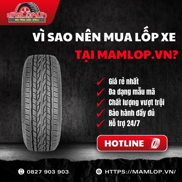 Với rãnh Aqua Drainage thoát nước vượt trội, hợp chất Diamond Blend Compound bền bỉ và hiệu suất phanh được kiểm chứng độc lập, lốp Continental 275/70R16 ContiCrossContact LX2 xứng đáng là lựa chọn đáng tin cậy cho SUV cỡ lớn. Đặt hàng ngay qua hotline: 0827 903 903 hoặc ghé trực tiếp Mamlop.vn để được hỗ trợ nhanh nhất.