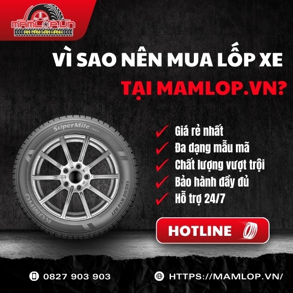 Với kích thước kết hợp độc đáo 195mm (rộng nhất) và 70% (chiều cao tối ưu), lốp Kumho 195/70R14 Super Mile TX61 đảm bảo cả độ bám đường vượt trội lẫn khả năng vượt địa hình tốt. Liên hệ ngay Mamlop.vn qua hotline: 0827 903 903 để được tư vấn và đặt hàng nhanh!
