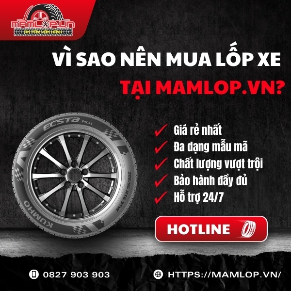 Thành lốp 50% êm ái hơn, tải trọng 650 kg vượt trội và hợp chất silica bám đường bền bỉ, lốp Kumho 205/50R17 Ecsta PS31 là lựa chọn hiệu suất cao với mức giá hợp lý cho sedan đa dụng. Ghé Mamlop.vn hoặc liên hệ hotline: 0827 903 903 để đặt mua và nhận báo giá tốt.