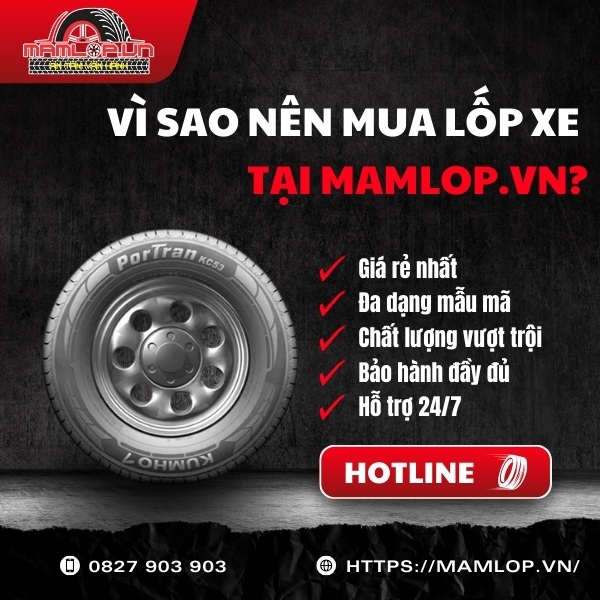 Mamlop.vn là đơn vị uy tín chuyên phân phối lốp Kumho Portran KC53 10PR chính hãng tại TPHCM với mức giá chỉ từ 1.550.000 VNĐ/chiếc. Chúng tôi xin cam kết: