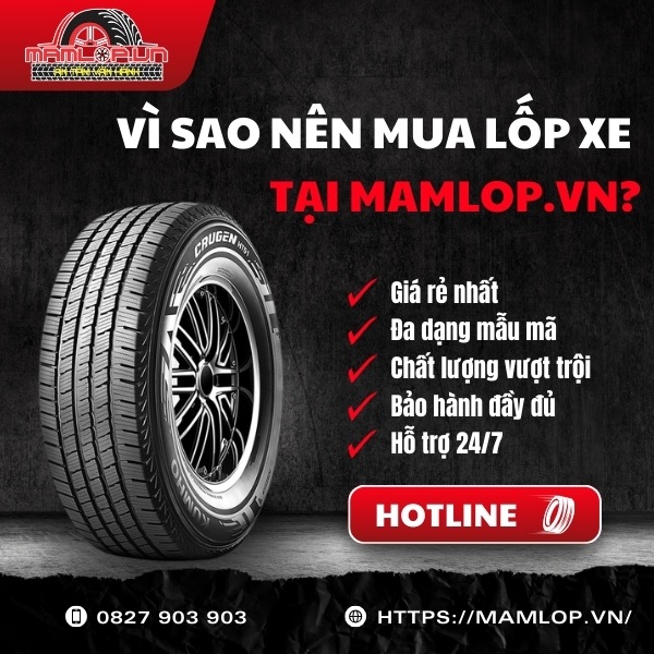 Êm ái, bền bỉ và phanh chắc trên đường nhựa, lốp Kumho 265/75R16 Crugen HT51 là lựa chọn thực tế cho chủ xe SUV và bán tải chạy đường trường hoặc nội đô nhiều. Ghé Mamlop.vn hoặc liên hệ hotline: 0827 903 903 để đặt mua và nhận báo giá tốt.