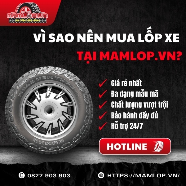 Mamlop.vn tại 35/1B Quốc lộ 1A, Phường Tân Thới Hiệp, TPHCM là địa chỉ phân phối lốp Kumho chính hãng với mức giá cạnh tranh và nhiều cam kết rõ ràng bảo vệ quyền lợi người mua: