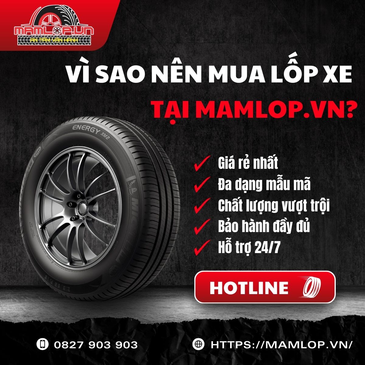 Với những đặc điểm nổi bật vừa nêu trên, lốp Michelin 165/65R14 Energy XM 2+ là lựa chọn cao cấp đáng tin cậy cho Hyundai i10, Hyundai Getz. Nếu cần tư vấn thêm về sản phẩm, hãy liên hệ Mamlop.vn qua hotline: 0827 903 903 để được hỗ trợ tận tình nhé.