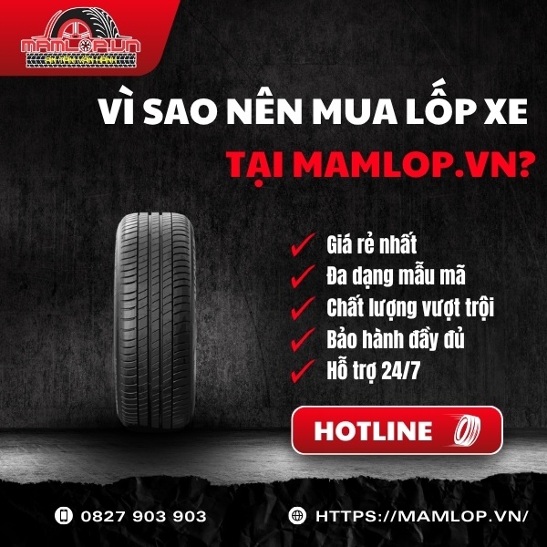 Mamlop.vn tại 35/1B Quốc lộ 1A, Phường Tân Thới Hiệp, TPHCM là địa chỉ phân phối lốp Michelin chính hãng với mức giá cạnh tranh, cam kết rõ ràng từ sản phẩm đến dịch vụ. Dưới đây là những gì bạn nhận được khi chọn mua tại đây: